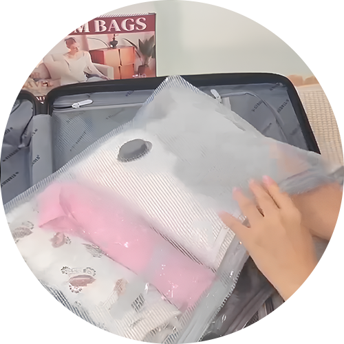 Die ComfortGo Vakuumbeutel entfernen überschüssige Luft und komprimieren Ihre Kleidung, wodurch das Fassungsvermögen Ihres Lieblingskoffers erhöht wird.